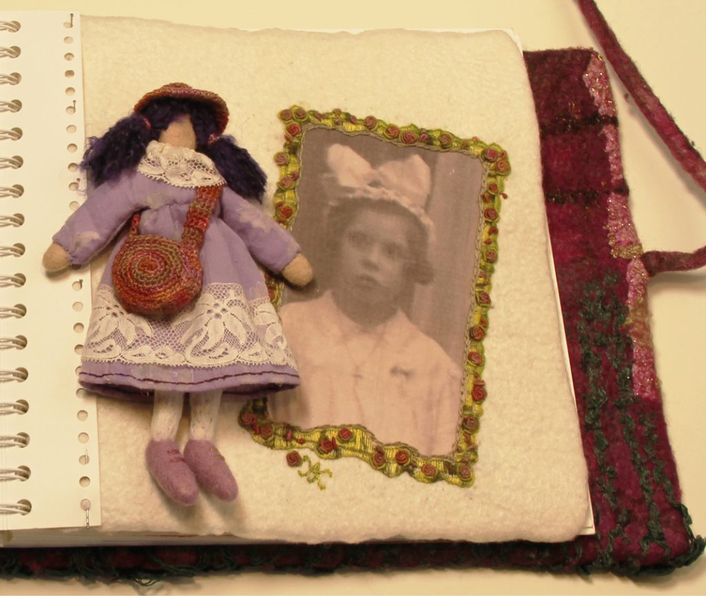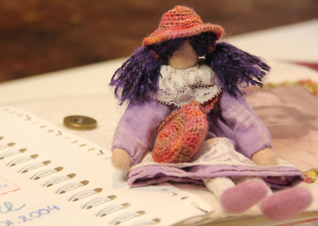The doll has become a cute little thing and to give our grandchildren the opportunity to hold it, it has been attached to the page with a magnet.