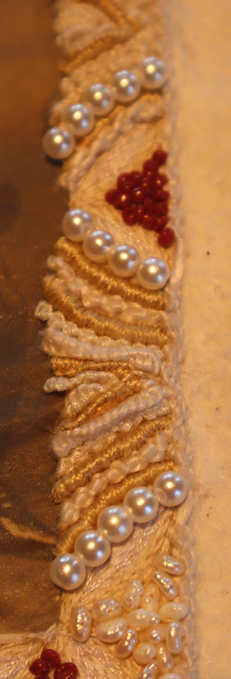And I work with golden thread from the 1930s from Borduuratelier Laudy. This was exhibited together with my work in the Sittard Museum in 2016. I was allowed to work with a small amount of this material and I am very careful with that.