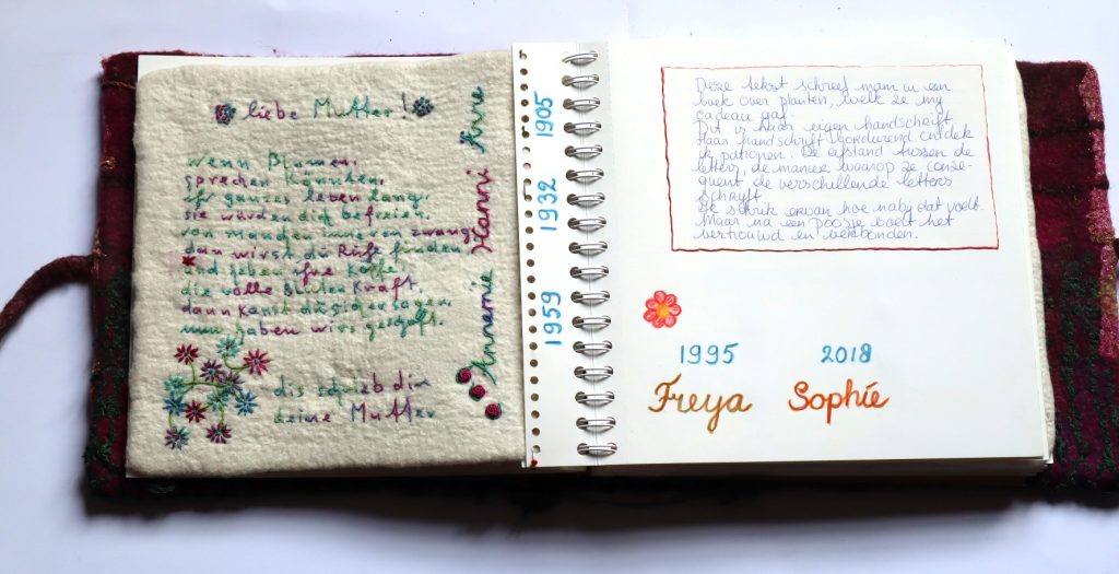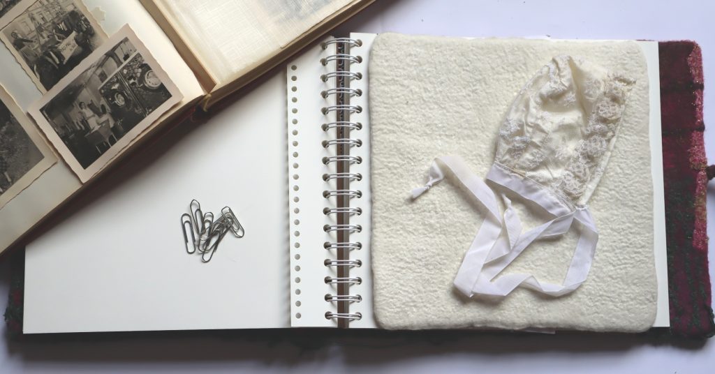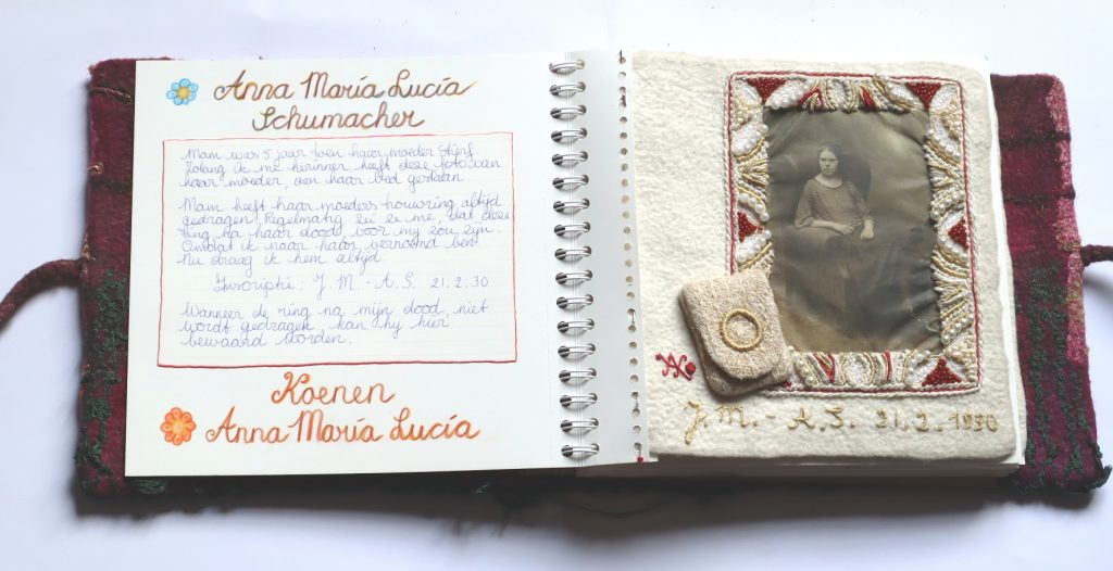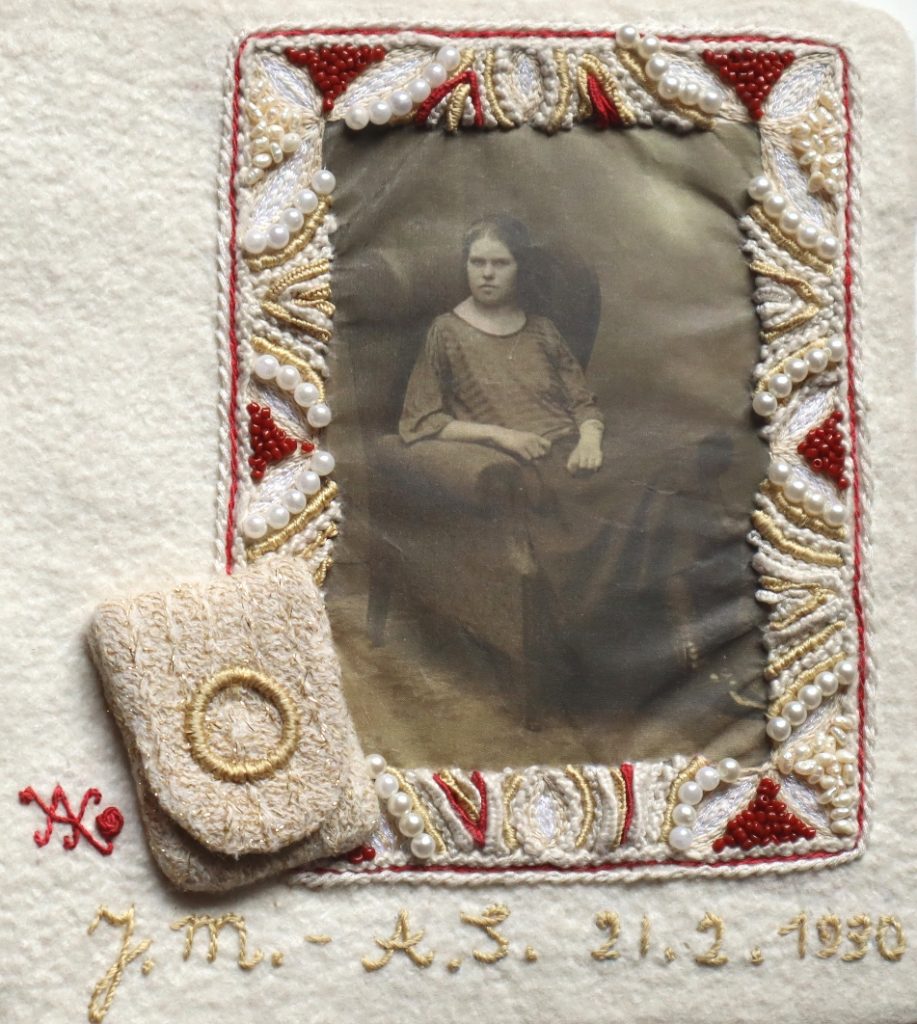 It will be about her as a child and young woman. Her love for textiles. The hat is made for a doll from the christening dress she herself made for us children.