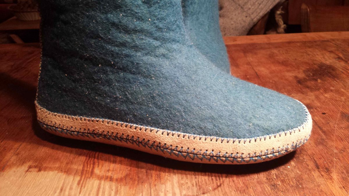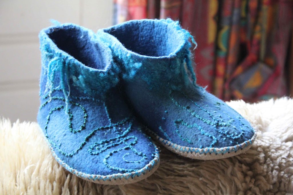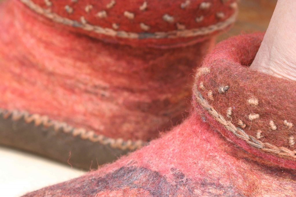 High slippers are felted in one piece.