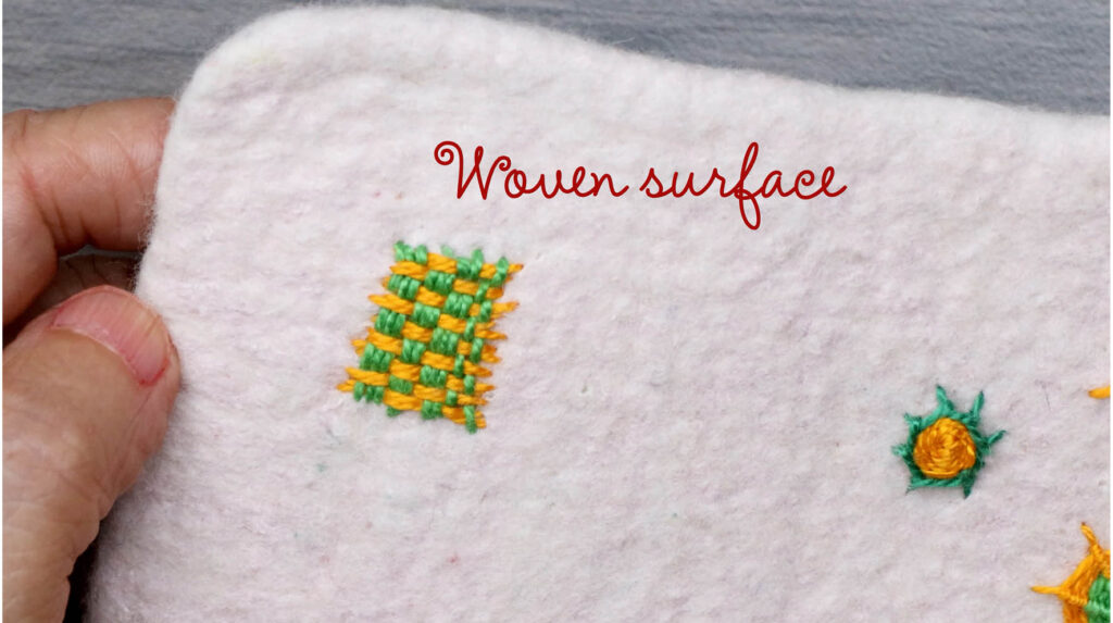 In this sequence we will work with all kinds of different weaving stitches. They can be used in rows as decoration, but also to fill areas and can also be used as a single stitch.