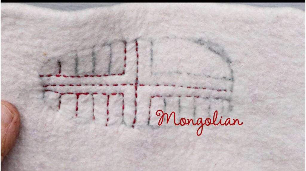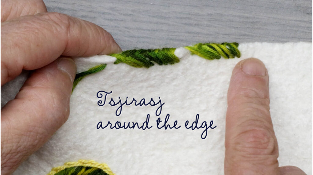 Tsjirasj = Kyrgysch and means close together and is a stitch that is used in Asia for the embroidered felt yurt bags.