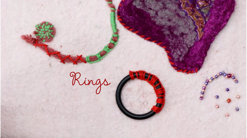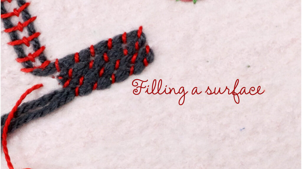 Connecting stitches – Chain stitches – Filling stitches – Weaving stitches – Buttonhole stitches. An infinite number of variations are possible.