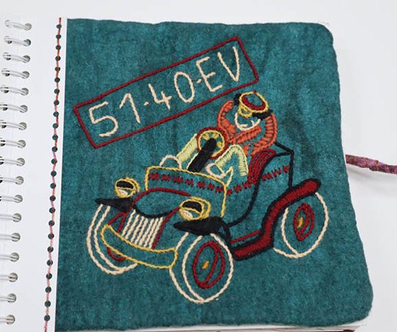 When I went looking for threads to embroider it on the next felted page, I found the bundle that she embroidered the original with at the time.