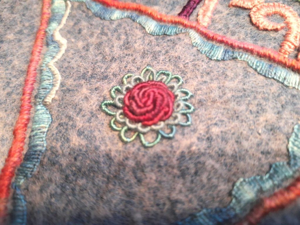 Even before I started I knew that in the middle there will be a large rose with open bouillon knot leaves.