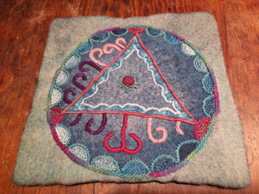 Homework assignment at the end of part 2, my favorite embroidery stitch book, a large mandala.