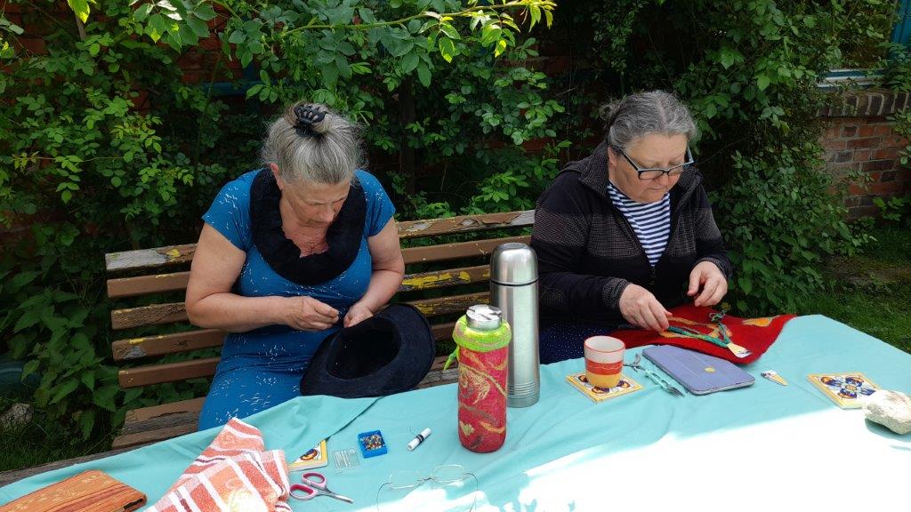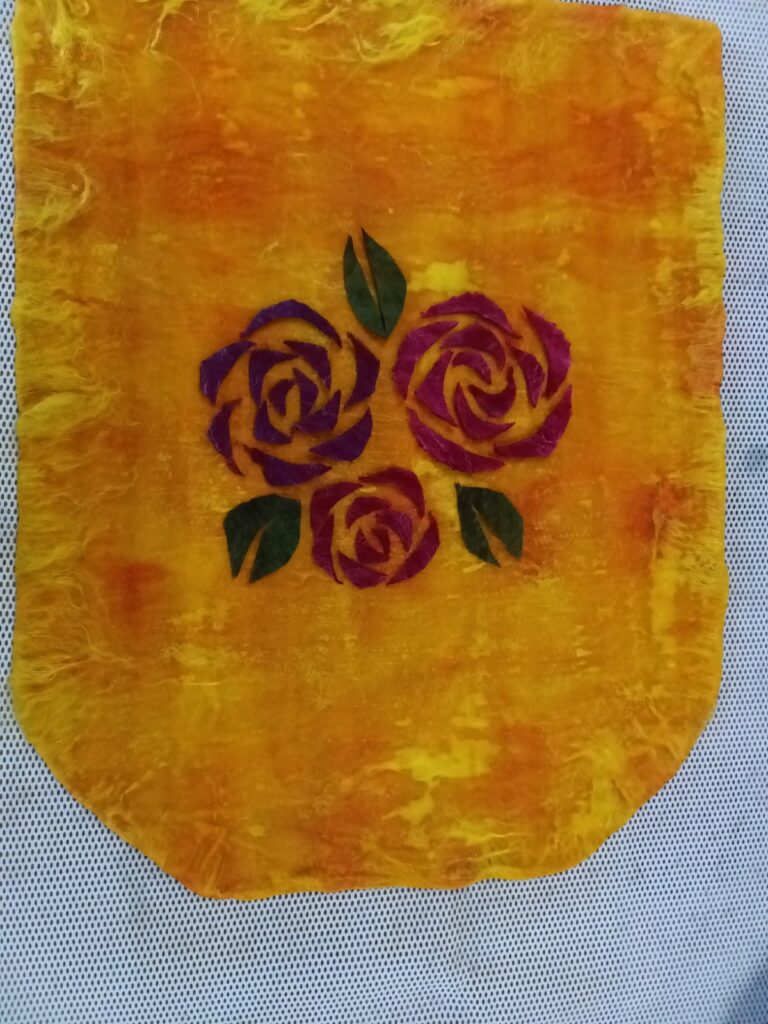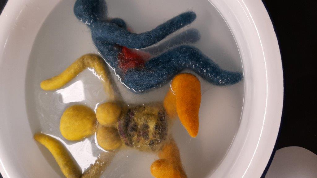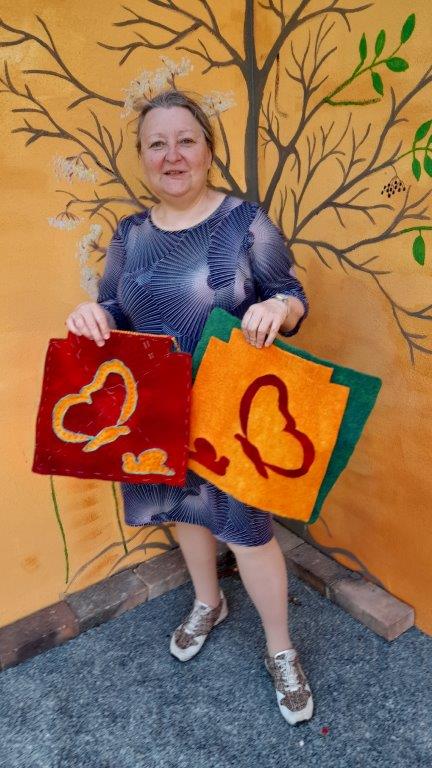 Sabine’s felting course was instructive. You were strict, but we wanted the result to be beautiful. And that’s exactly what it is: a beautiful decorative scarf with a 3D look. Thank you for the intensive course.