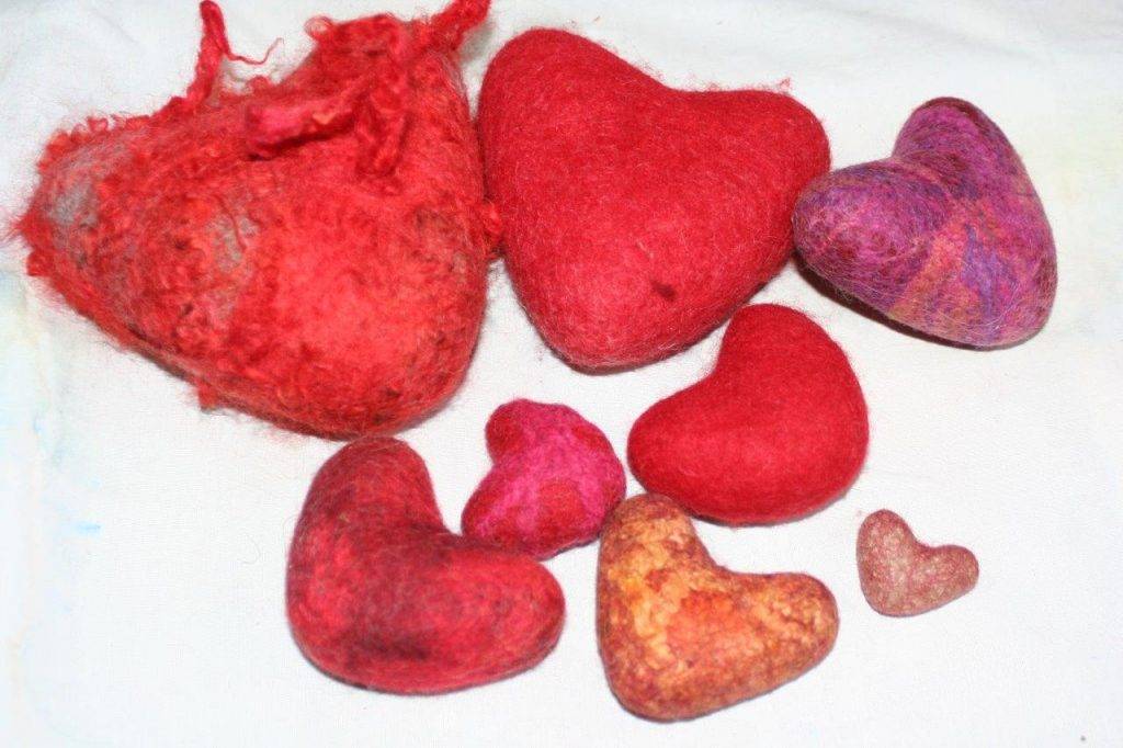 Echte beginners starten met de basisvormen van het vilt: balvorm, koord, platte vlak, vormvilt.
